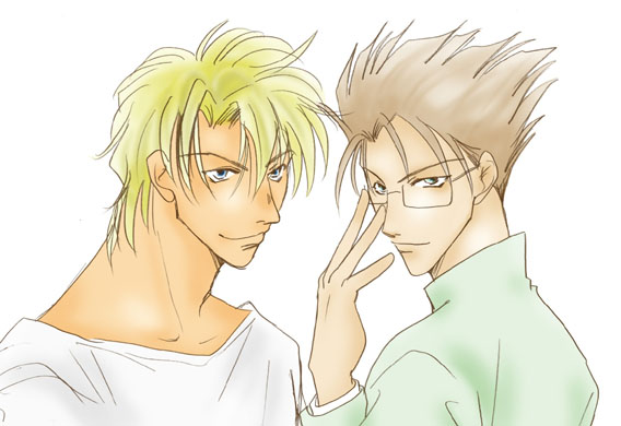 美葉さんのイラストは、いつも表情がとっても魅力的で目をひかれてしまいます。このイラストもいつもの例にもれず、二人の表情がとてもいいですよね!二人とも不敵な笑みを浮かべているんですけど、グーはとっても男っぽくて、ハイネルがまさにクールビューティー!という感じなのが印象的です。ステキすぎです・・・。
