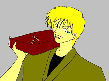 稲荷さんに、稲荷さんご自身の手による時代劇グーハーのお話世界の化粧師雀庵、ことグーのイラストをいただきました。 肩にかついだ仕事箱が粋でステキですよね!こちらを見つめるグーの瞳にドキドキです。 彼の手で化粧をなされたならば、きっとどんな女性も(あるいは男性も)本人でさえも知らなかった魅力を引き出されるに違いありませんよね!くーっ。カッコよすぎです、グー!! 稲荷さん、粋でいなせでカッコいい化粧師グーのイラストを下さり、本当にありがとうございました!