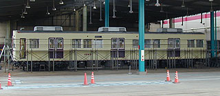 今日1/5の午後の正雀工場の様子をお伝えする。トラバーサの周りに3070Fの中間車であるC#3514が白パテ塗りの状態で置かれていた。側面表示器に「宝塚−西宮北口」の板が取り付けられているのを確認した。他にはC#3020等が置かれていた。