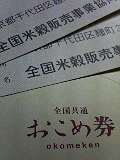 お米券×2Get金券ショップに行ってしまいました。 ちょっとしたお小遣いの金額ですね。 [2006年10月12日(THU) 22:15]