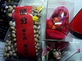 おみやげオフで頂いた物です。 なみさんからは豆(節分なので)を、カエルのツラさんとおとさんからはチョコレート(もうすぐバレンタイン)を。ありがとうございます。 カエルのツラさんからはジャンケンで争奪して頂きました。 久美さんの娘さんがとても可愛かったです。騒がしくてほとんどお昼寝できなかったからか最後はグズり気味でしたが、それ以外ではスマイルをばら蒔いていました。 ぽた創造主(創造酒?)には今回も正しいビールの飲み方(つぎ方)講座を教えて頂きました。でも家ではあまりビールを飲まないなぁ… なみさんが恐れられてしまった理由はなみさんの絵日記に書かれていますが、それらが複合的に絡み合っているからかも。 あ、りゅかさん。お預かり物があるので来週お届けします。 今回はぼん幹事にお店選びから連絡、当日の運営まですべてお任せ。こんな参謀でいいなら楽でいいなぁ。ぼん幹事、お疲れ様でした。次回もよろしくお願いします。 [2007年2月5日(MON) 23:09]